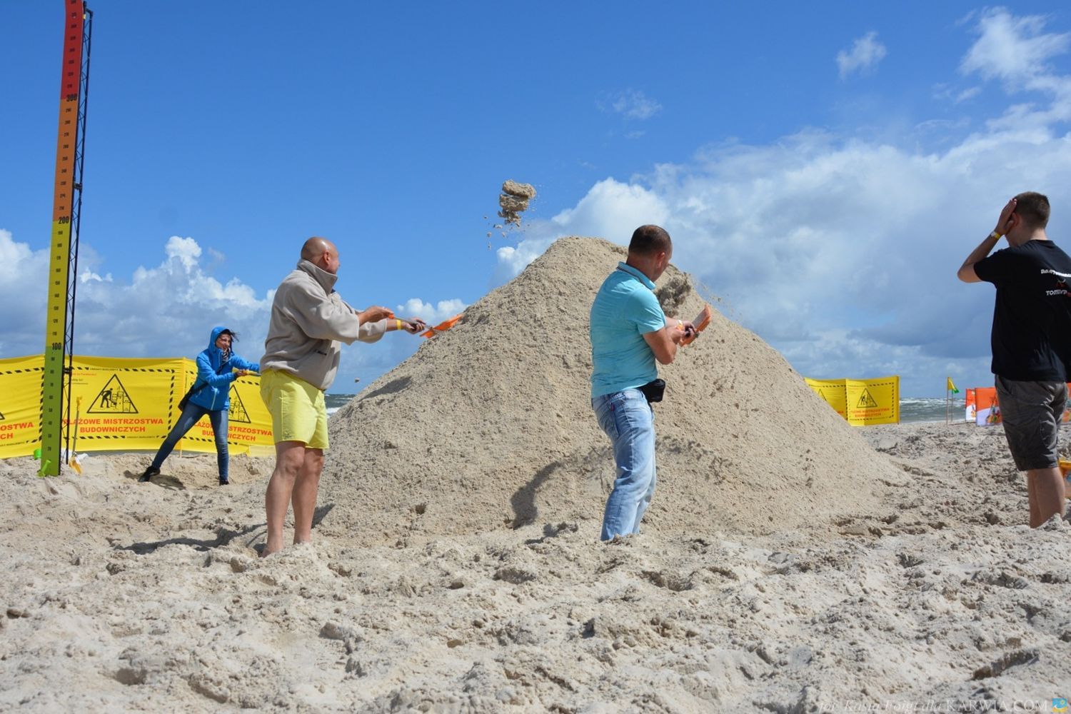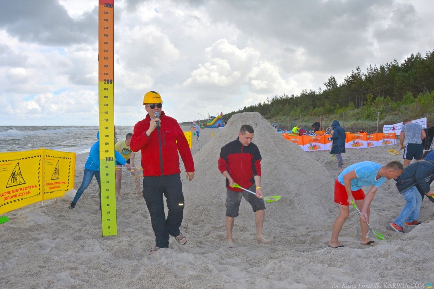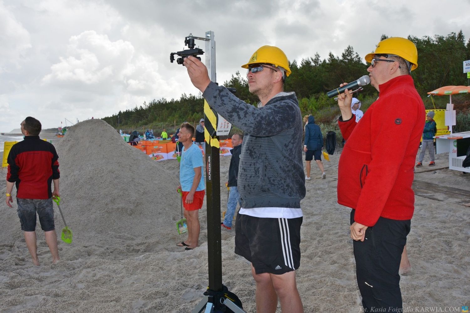 Mimo złych warunków atmosferycznych - silnego wiatru i przelotnego deszczu, budowniczym udało się usypać górę wysokości 268 cm. i ustanowić nowy rekord 2017 - przebili wysokością górę w Kuźnicy o 5 cm.