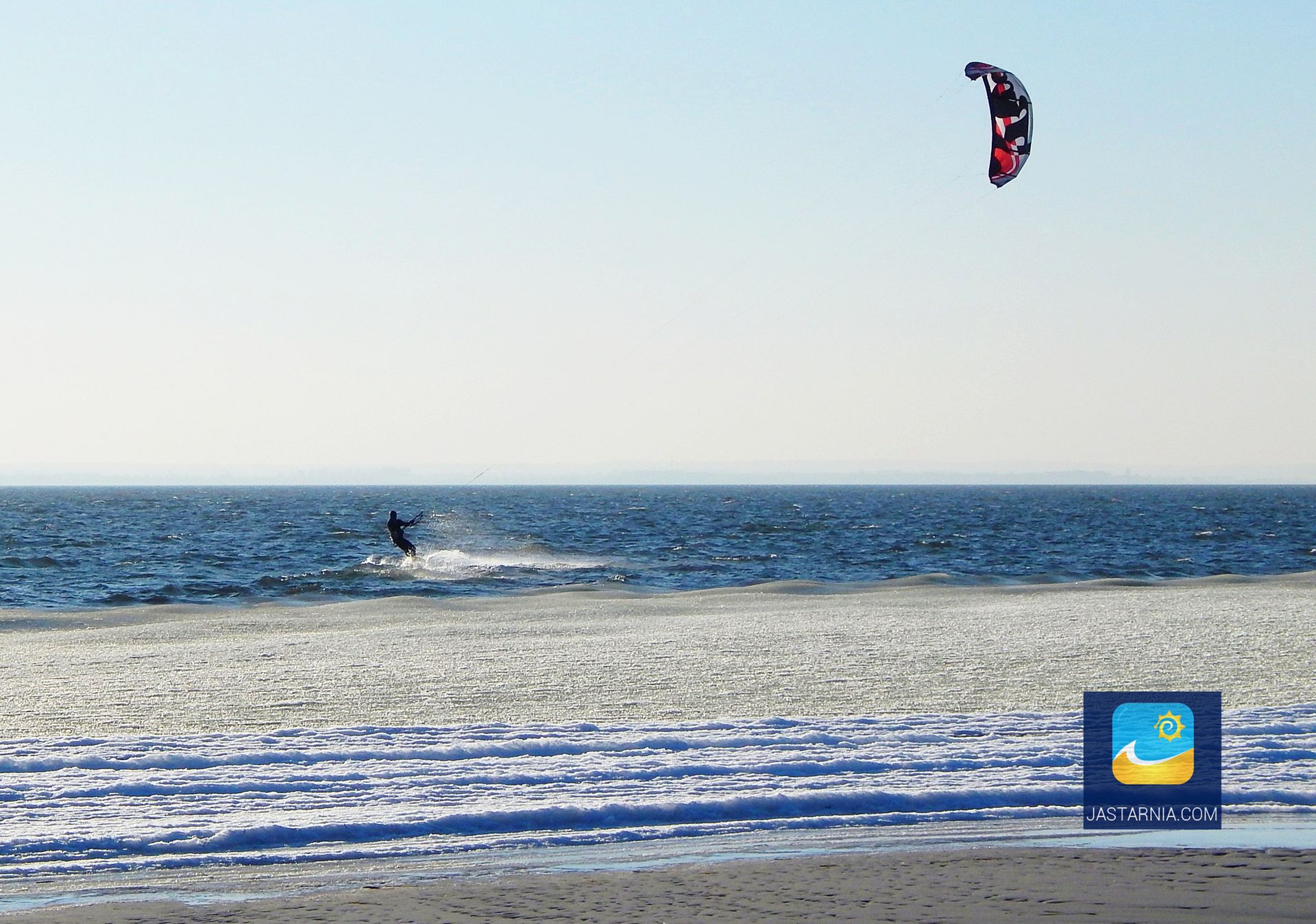 Kitesurfer na Zatoce zimową porą.