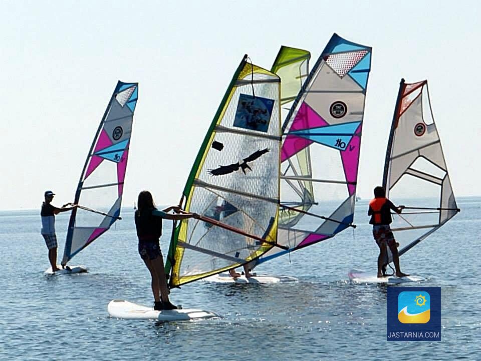 Windsurfing w większej grupie.
