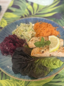 Nie jest tanio ale za to jedzenie jest naprawdę dobre i porcje są spore. Jadłem dorsza z frytkami i surówka - cena 40 zł w tym sama ryba 30zł, frytki 5 zł surówka 4,5zł. Oceniam to danie na 4 ponieważ frytki jak wszędzie a surówkę jadłem lepszą w knajpach w karwii gdzie cała reszta była gorsza. Żona jadła Halibuta również z frytkami i też był pyszny. Zupa pomidorowa jak narazie najlepsza ale to dopiero 3 miejsce które odwiedziliśmy. Syn jadł pierś z kurczaka i raczej bym ją odradzał.