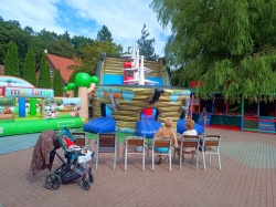 Plac zabaw widnieje na karcie Karwi jako atrakcja ze zniżką na miejscu pracownicy nic na ten temat nie wiedzą więc zniżki brak. Za 20min zabawy z 2 dzieci 2l i 7l 60zl to troszkę przesada. 2 dmuchane i mały małpi gaj w cenie w tym 1 z tych dmuchańców wielka zjeżdżalnia gdzie młodsze dziecko nie może poskakać. Eurobangie 30 zł 7min i walec na wodzie 30zl 10 min dodatkowo płatne. Podsumowując lekka przesada cenowa.